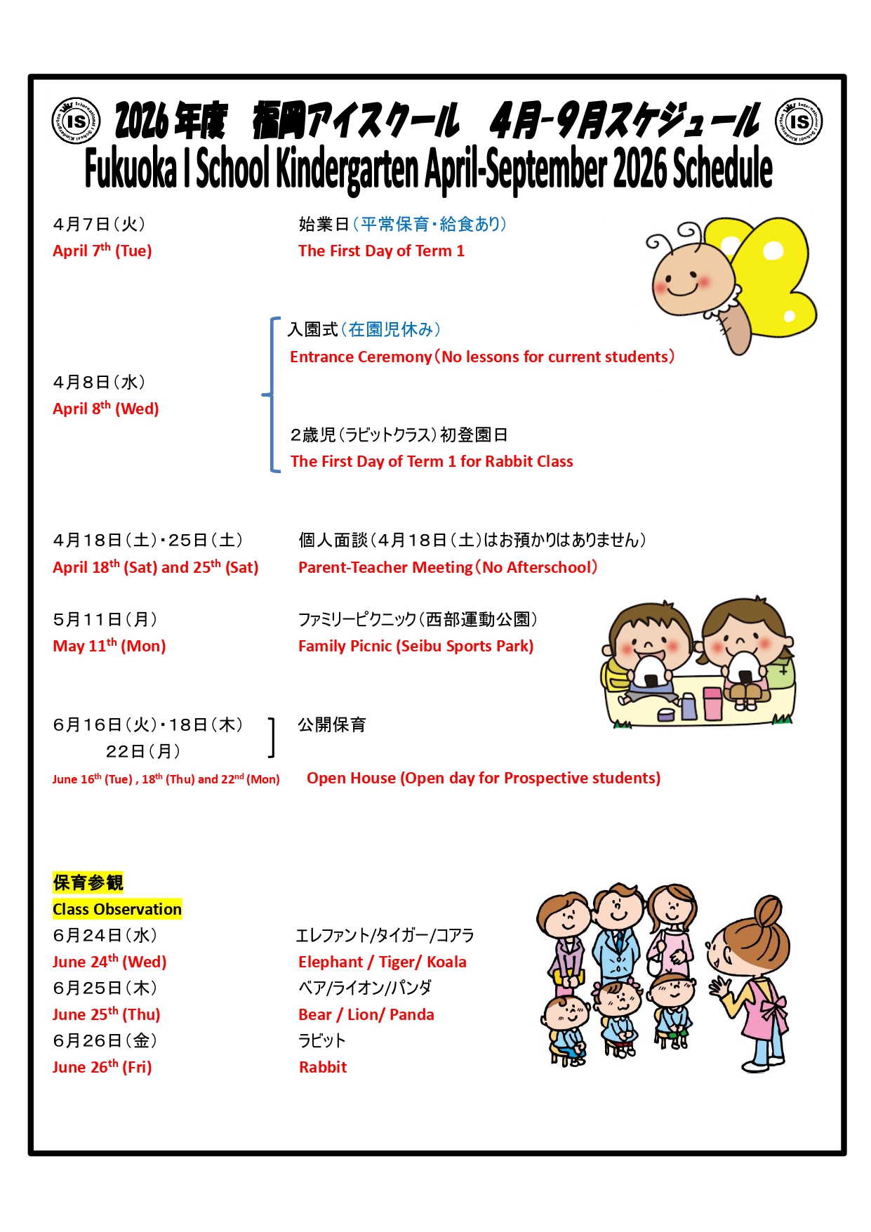 土曜日(Saturday) 第1,3,5土曜日 自由登園・縦割りクラスで遊びます。お弁当 ※BUS送迎なし